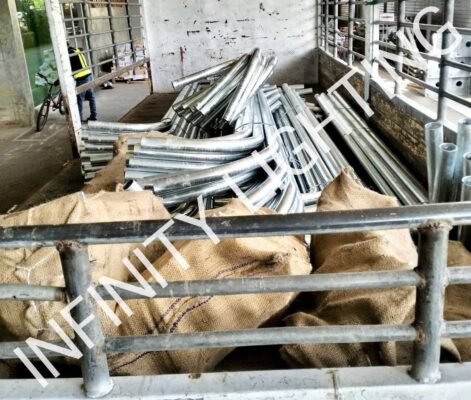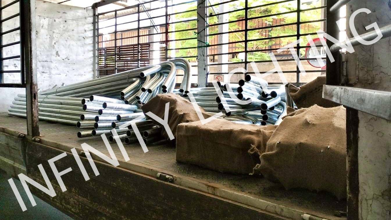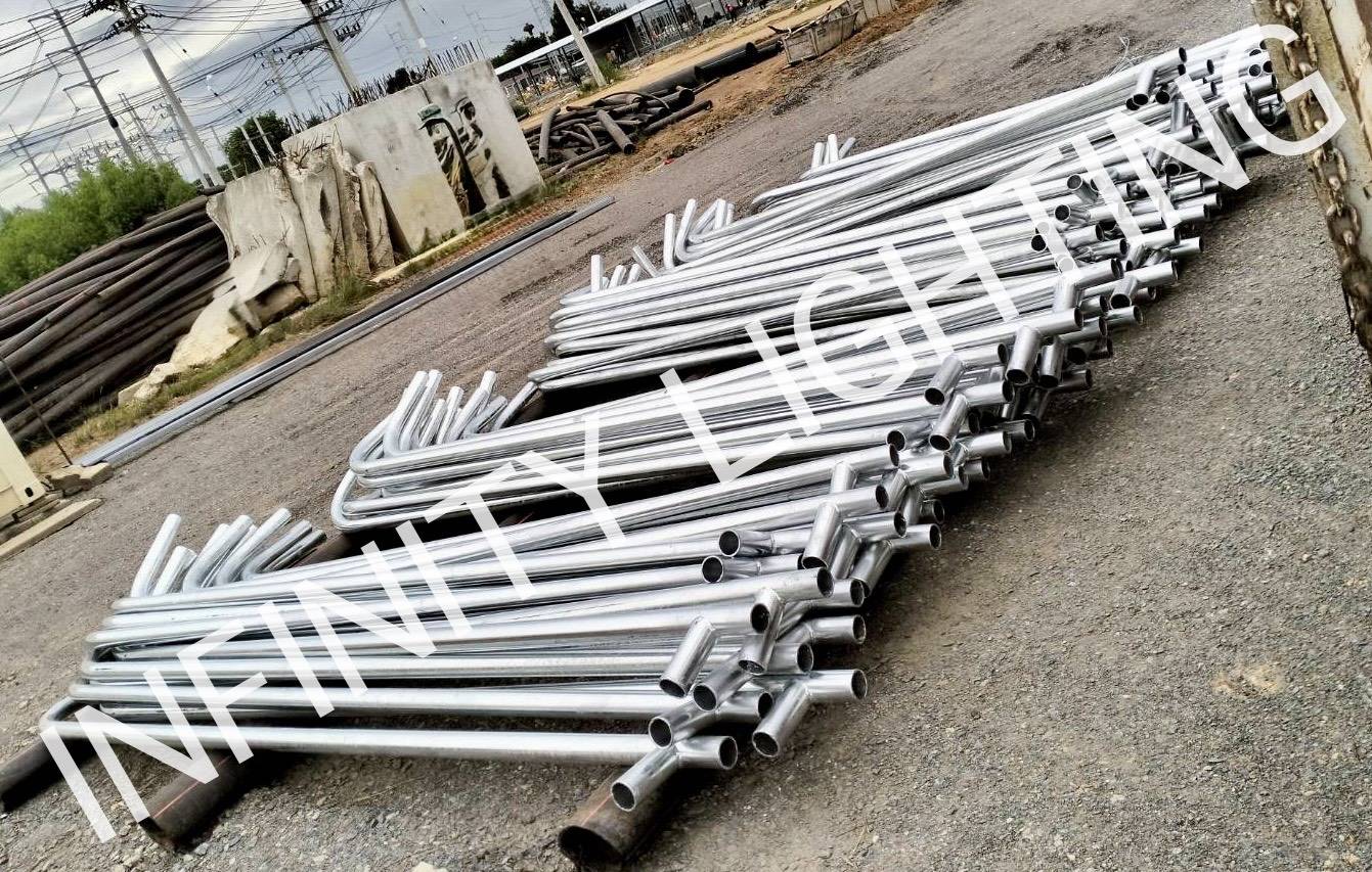 งานกิ่งโคม 2″ ยื่น 3 เมตร R300 ชุบกัลวาไนซ์ เหล็ก 4mm. เจาะรู