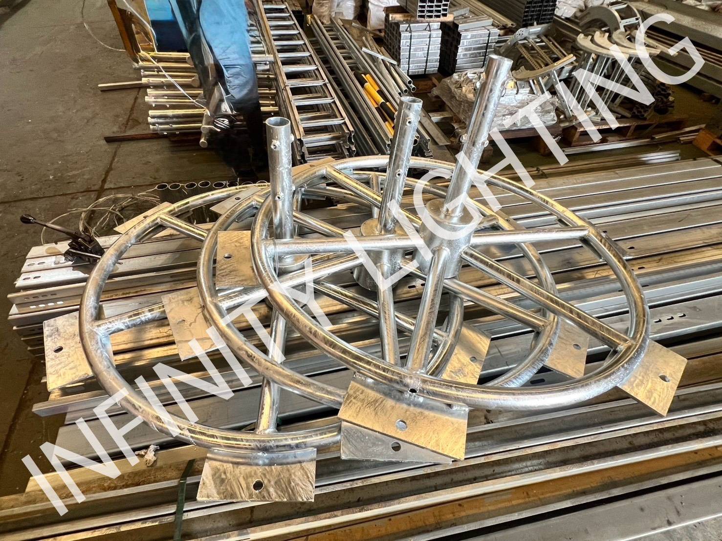 งานเสาโพสท็อป สูง 8 เมตร วงแหวนสำหรับยึดฟลัดไลท์ 6 โคม ชุบกัลวาไนซ์