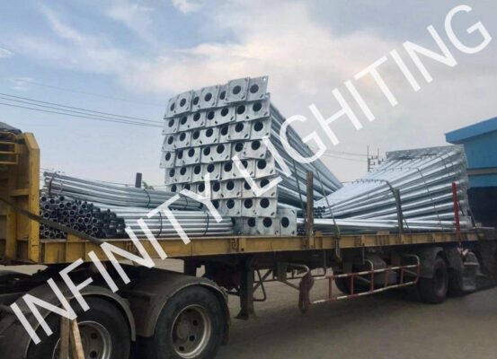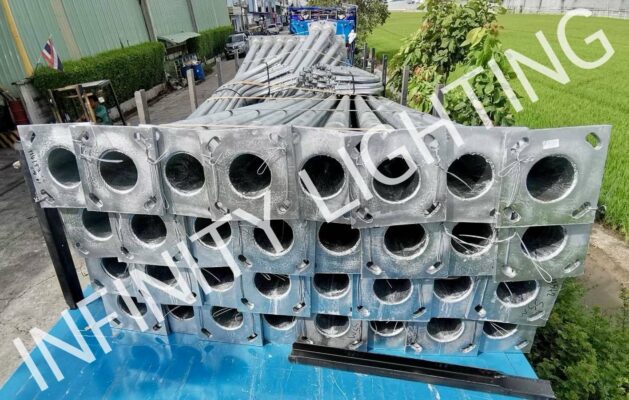 งานเสาไฟถนน สูง 6 เมตร กิ่งเดี่ยว ชุบกัลวาไนซ์ พร้อมสายไฟ