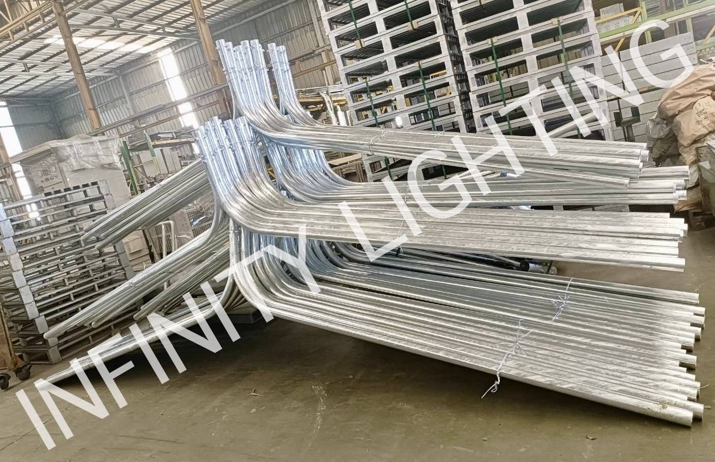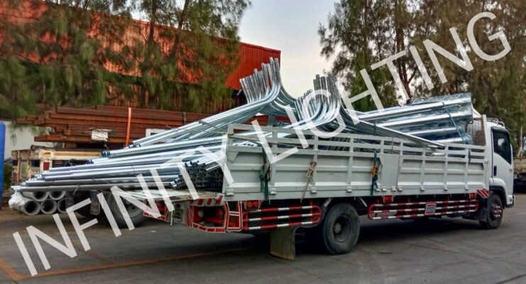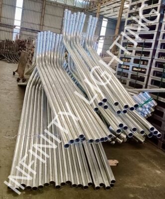 งานเสาไฟถนน สูง 9 เมตร กิ่งคู่ ชุบกัลวาไนซ์