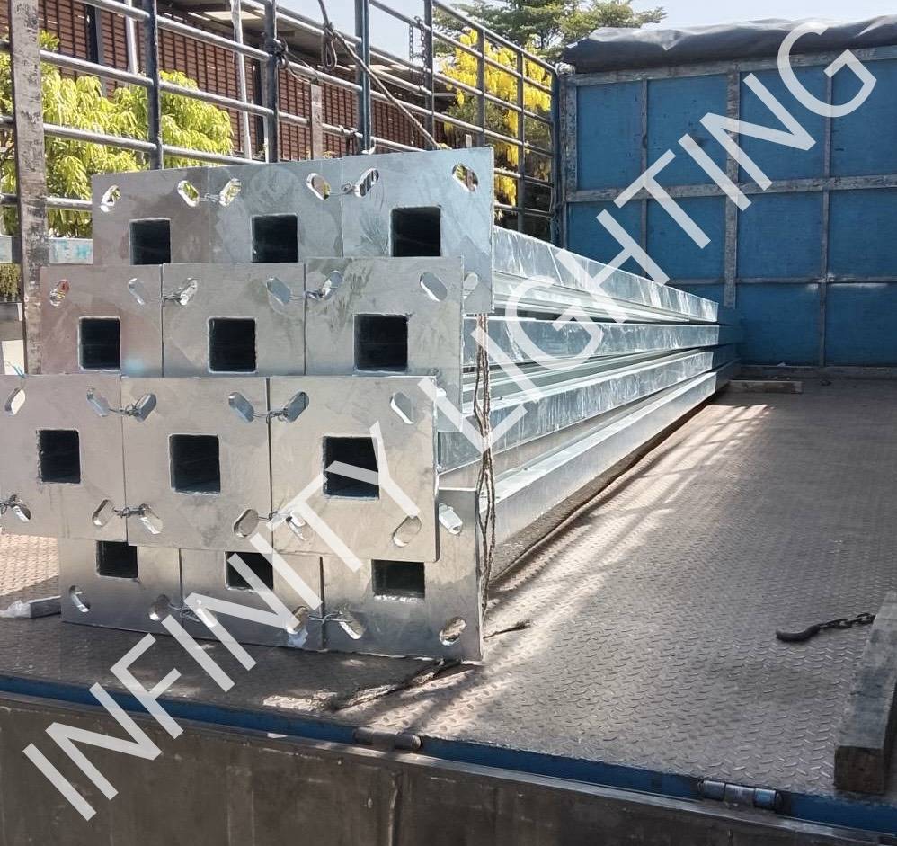 งานเสาเหลี่ยม 4″x4″ สูง 5 เมตร ไม่มีกิ่งปลาย 2″ ชุบกัลวาไนซ์