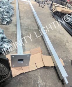งานเสาเหลี่ยม 5″x5″ สูง 8 เมตร กิ่งคู่ฉาก ชุบกัลวาไนซ์ + พ่นสีเทา