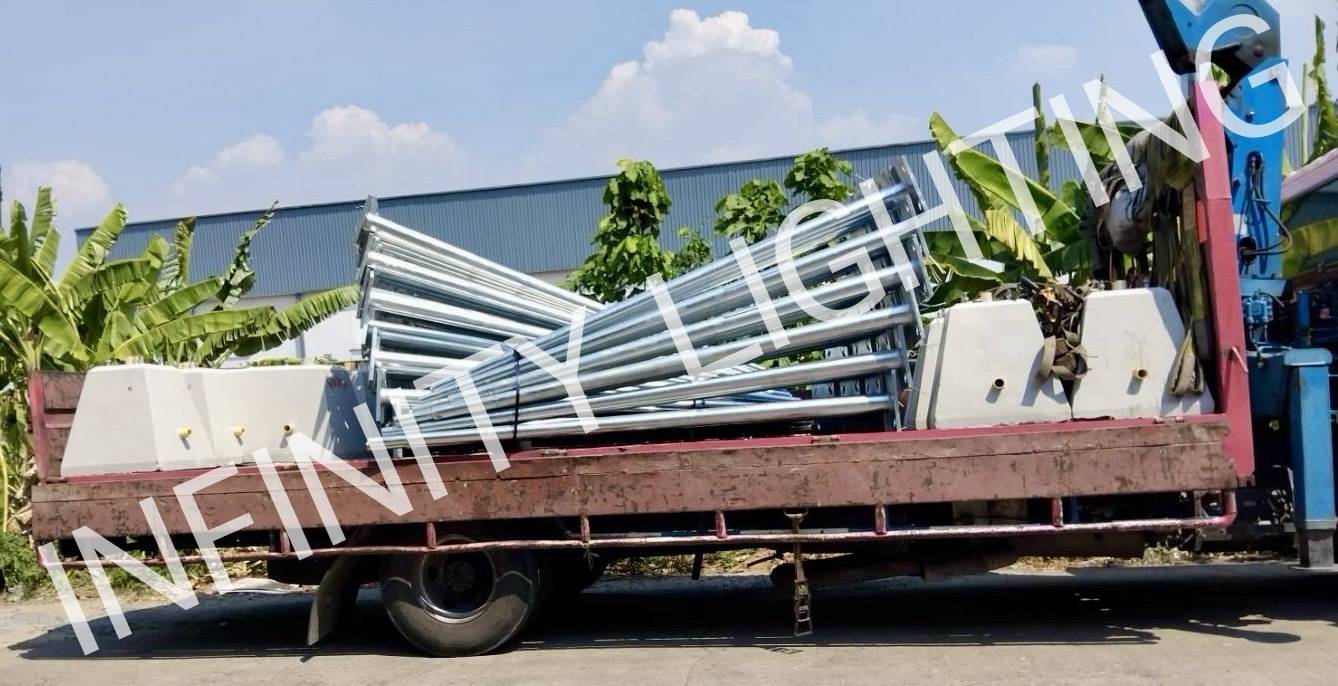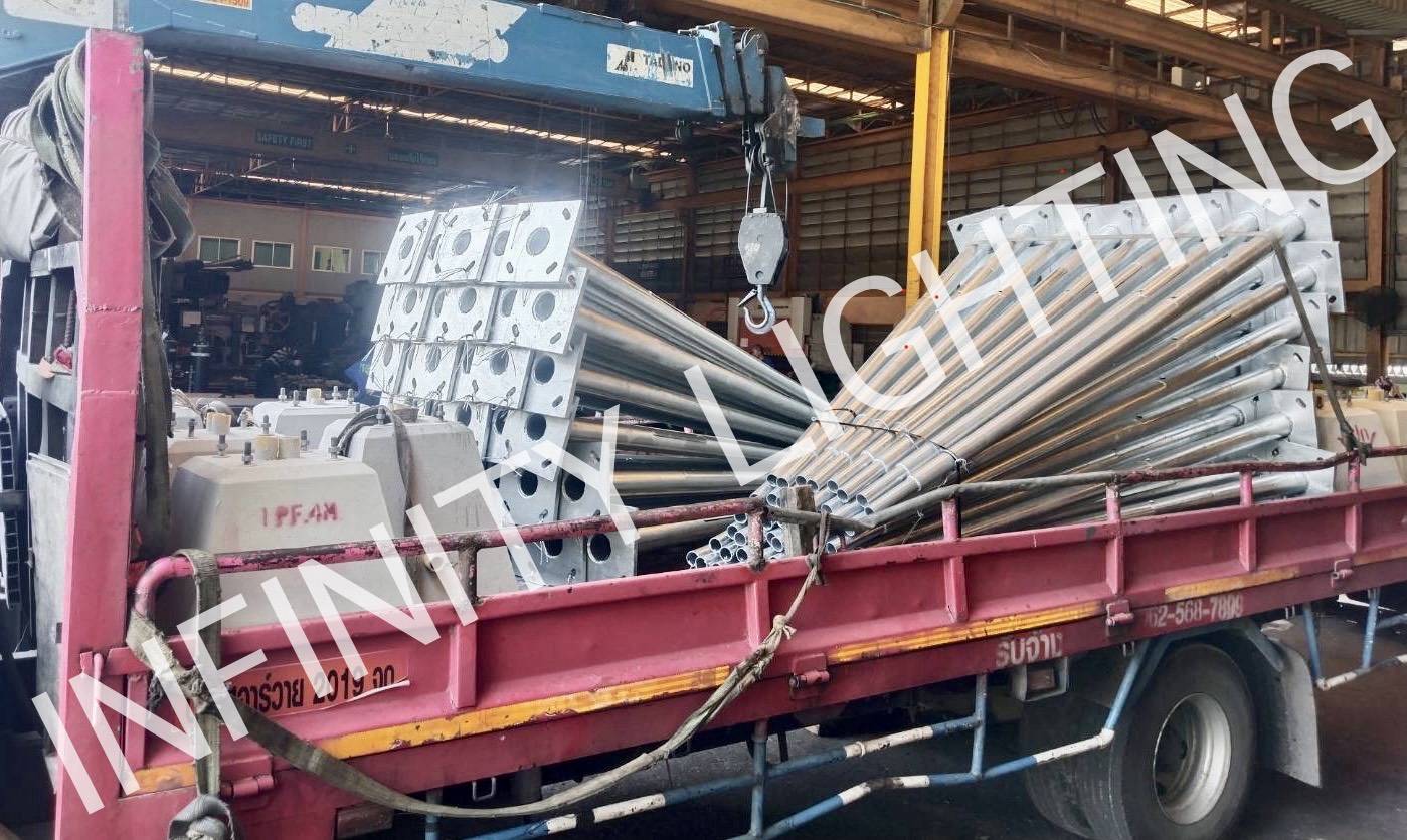 งานเสาเหลี่ยม 100x100x2.3t สูง 6 เมตร กิ่งเดี่ยวและ กิ่งคู่ ท่อขนาด 1″ ชุบกัลวาไนซ์ + พ่นสีขาว