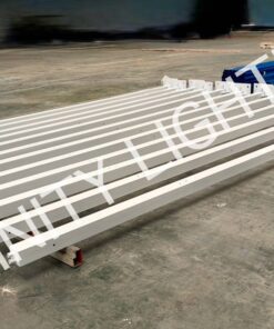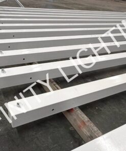งานเสาเหลี่ยม 100x100x2.3t สูง 6 เมตร กิ่งเดี่ยวและ กิ่งคู่ ท่อขนาด 1″ ชุบกัลวาไนซ์ + พ่นสีขาว
